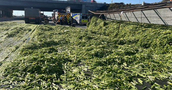 امروز، بخشی از بزرگراه Hwy. 400 تورنتوی بزرگ، به خاطر واژگونی کامیون حامل موادغذایی بسته شده.