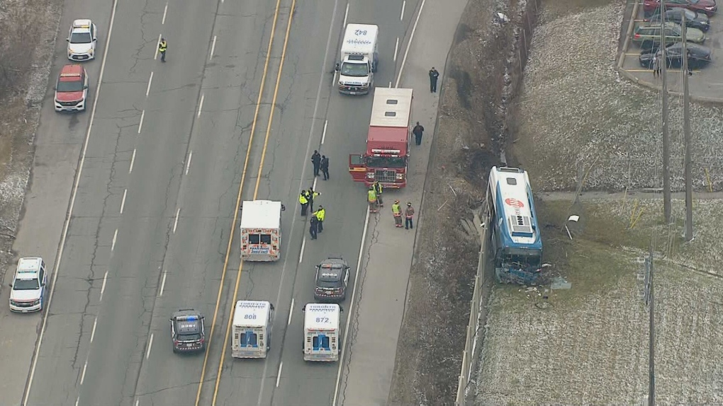 تصاویر منتشر شده نشان می دهد که در این حادثه یک دستگاه اتوبوس MiWay به شدت آسیب دیده و از جاده خارج شده. به گفته امدادگران، ۱۰ نفر از مسافران مجروح شده اند، اما جراحات جدی نیست.