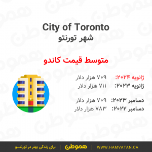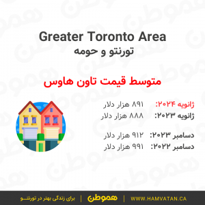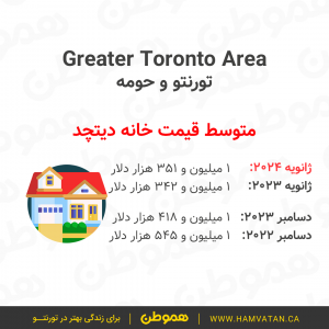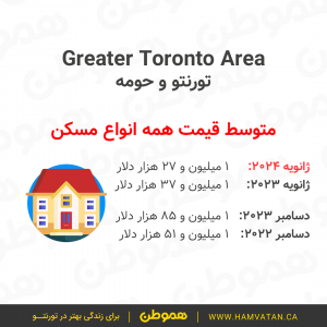 این گزارش نشان میدهد که در ماه ژانویه به طور متوسط قیمت مسکن در تورنتوی بزرگ (GTA)، حدودا ۱ میلیون و ۲۷ هزار دلار بوده که ۵٫۴ درصد نسبت به دسامبر ۲۰۲۳ و حدود یک درصد نسبت به ژانویه ۲۰۲۳ کاهش داشته.