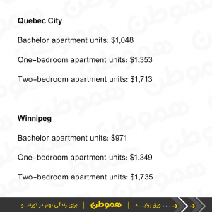برای مشاهده متوسط اجاره بها در شهرهای بزرگ کانادا برای آپارتمان های بدون خواب، یک خوابه و دوخوابه.
