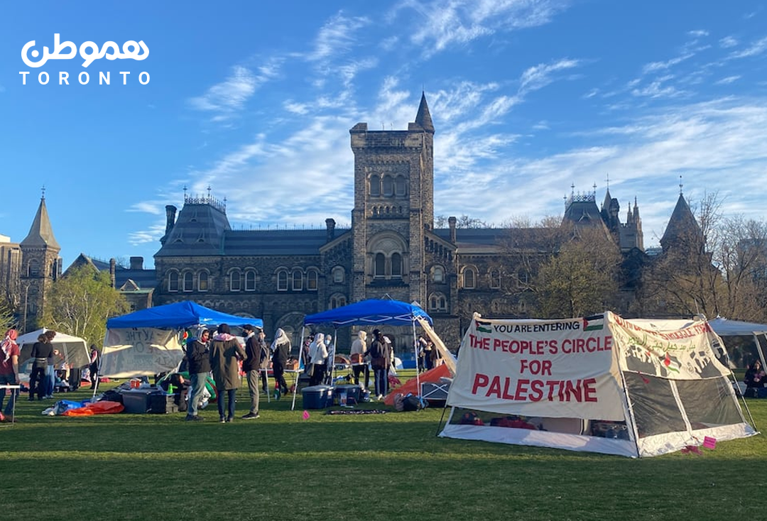 امروز صبح (پنجشنبه ۲ می)، معترضان طرفدار فلسطین در محوطه دانشگاه تورنتو کمپ زده اند. معترضان حصاری که دانشگاه برای جلوگیری برپایی کمپ کشیده بود را دور زده و چادر برپا کرده اند.