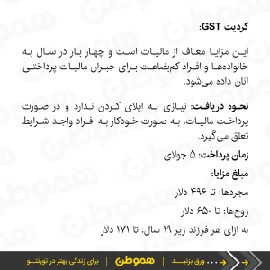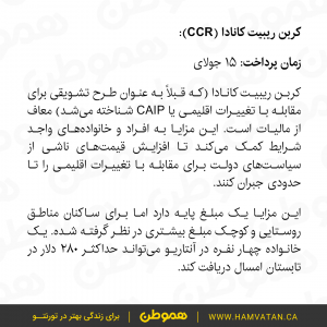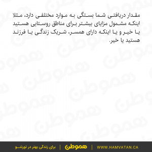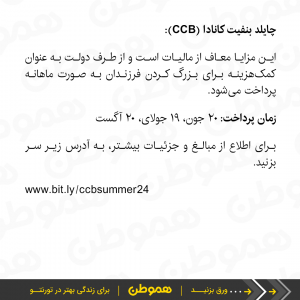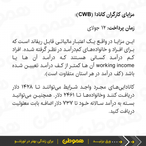 جزئیات و شرایط دریافت هر کدام از این مزایا متفاوت است، برای آنکه بدانید دقیقا کدام یک از آنها به شما تعلق می گیرد می توانید وب سایت دولت فدرال کانادا را چک کنید. جزئیات و شرایط دریافت هر کدام متفاوت است.