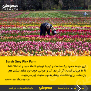 اگر در تورنتو زندگی میکنید برای آخر هفته میتوانید از چندین مزرعه زیبای گل لاله که در نزدیکی تورنتو واقع شدهاند، بازدید کنید.