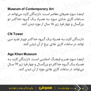 در ادامه، ۱۶ مکان و جاذبه دیدنی تورنتو را معرفی کردهایم که با کارت کتابخانه به رایگان میتوانید از آنها بازدید کنید.
