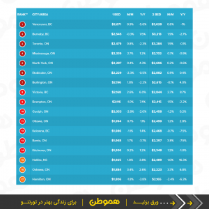 بر اساس گزارش جدید در شهر تورنتو، متوسط اجاره مسکن یک خوابه ۲۴۷۹ دلار است که نسبت به سال گذشته ۲٫۳ درصد کمتر شده. متوسط اجاره مسکن دو خوابه هم ۳۲۸۴ دلار اعلام شده که نسبت به سال قبل، ۰٫۱ درصد کاهش داشته.