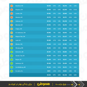 در ادامه میتوانید «نمودار تغییرات متوسط اجاره مسکن در کانادا» و «میانگین اجاره در شهرهای اطراف تورنتو و دیگر شهرهای بزرگ کانادا» را ببینید.