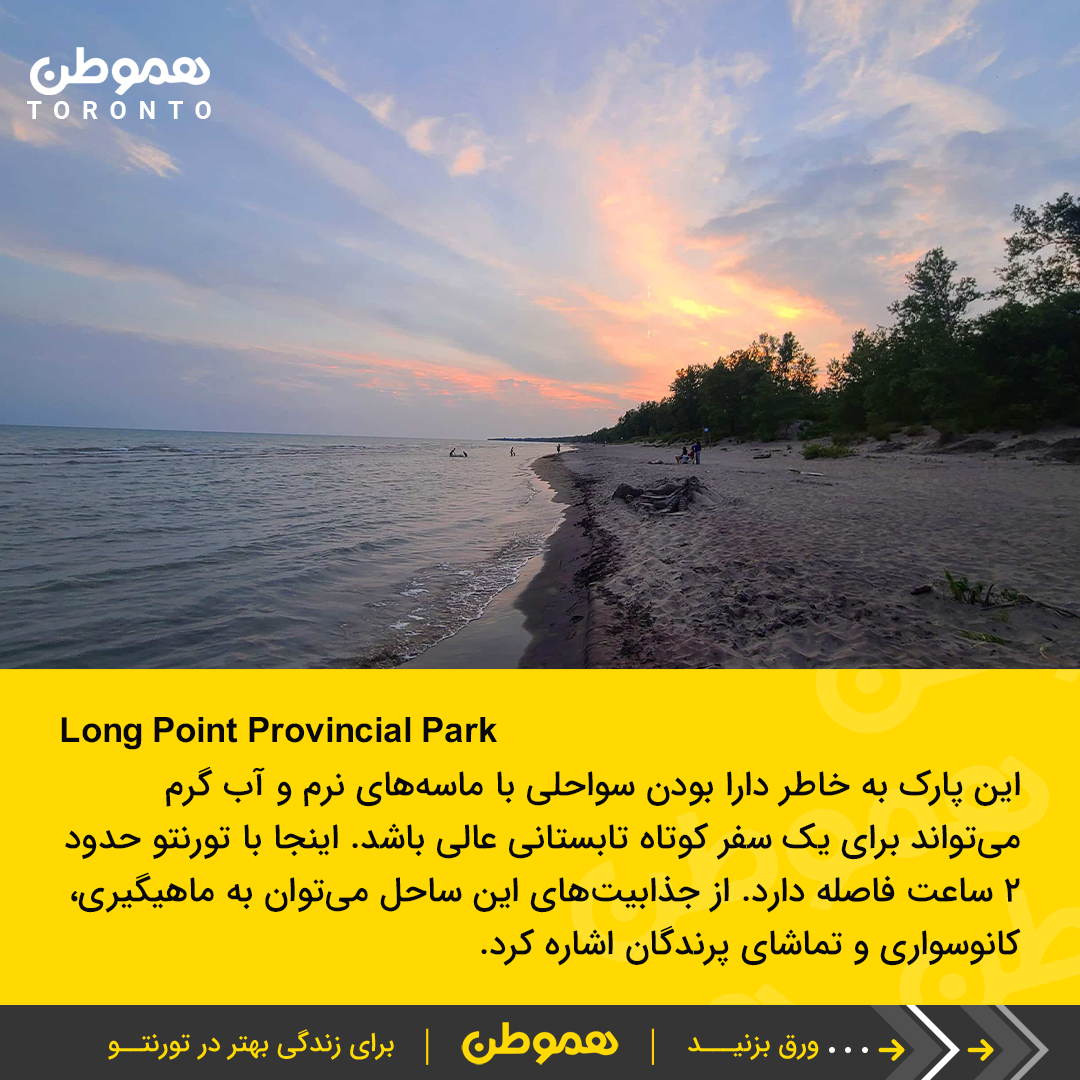 در ادامه ۶ ساحل زیبا در نزدیکی تورنتو معرفی شدهاند. برای اطلاعات بیشتر اسلایدها را ورق بزنید.