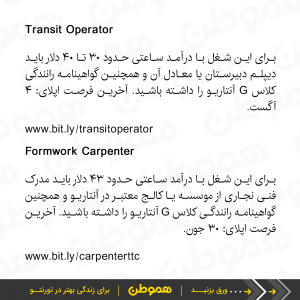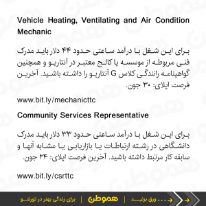 کمیسیون حمل و نقل تورنتو یا همان TTC برای چندین پوزیشن شغلی، نیرو استخدام میکند. این مشاغل میتوانند حدودا بین ۲۵ تا ۴۵ دلار در ساعت درآمد داشته باشند. نکته مهم این است که برخی از این مشاغل با درآمد خوب نیاز به مدرک دانشگاهی یا کالج ندارند.