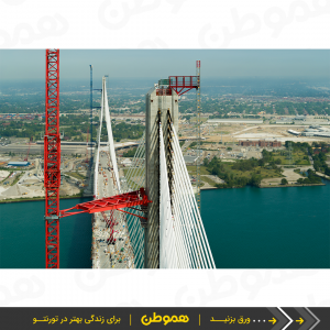پل کابلی Gordie Howe International Bridge بر روی رودخانه دیترویت در حال ساخت است و وینزور (در آنتاریو) را به دیترویت (در ایالت میشیگان آمریکا) وصل میکند. تابستان امسال، این پل به نقطه عطف خود رسید و دو سر پل به یکدیگر رسیدند.
