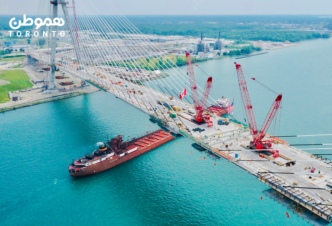 پل کابلی Gordie Howe International Bridge بر روی رودخانه دیترویت در حال ساخت است و وینزور (در آنتاریو) را به دیترویت (در ایالت میشیگان آمریکا) وصل میکند. تابستان امسال، این پل به نقطه عطف خود رسید و دو سر پل به یکدیگر رسیدند.