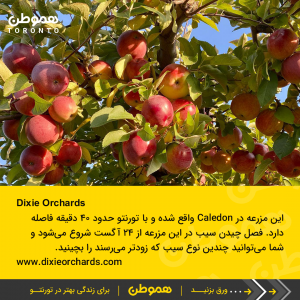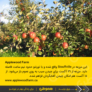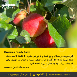 در ادامه ۵ مزرعه در نزدیکی تورنتو معرفی شدهاند که میتوانید برای چیدن سیبهای تازه و خوشمزه به آنها سر بزنید. بهتر است پیش از رفتن با مزرعه تماس بگیرید و مطمئن شوید که امکان چیدن سیب وجود دارد یا نه.