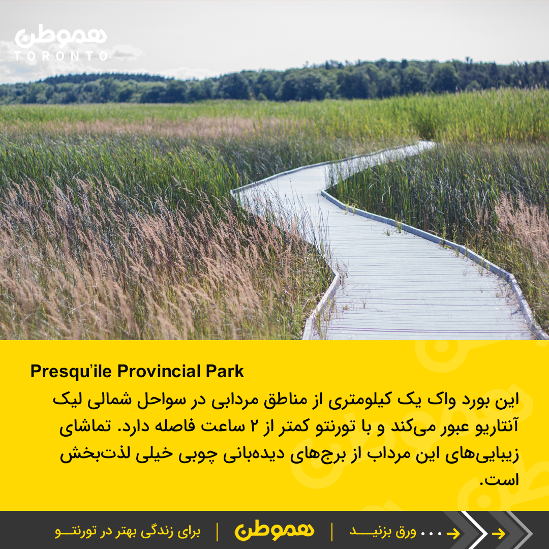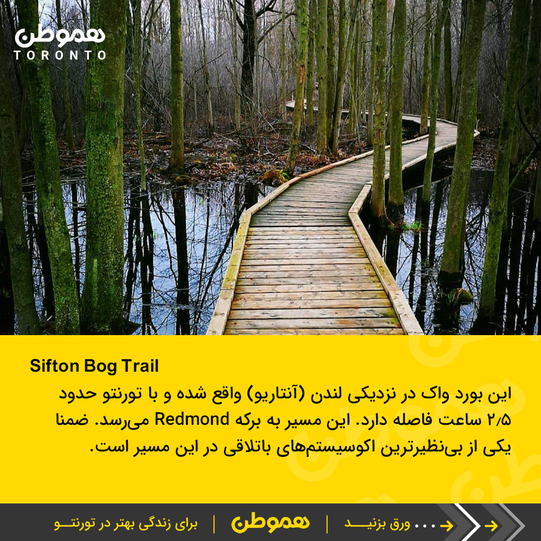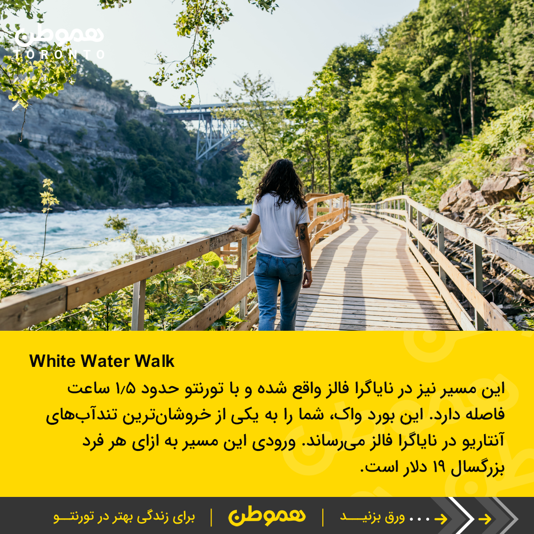 در اطراف تورنتو (به فاصله کمتر از ۳ ساعت)، بورد واکهای متعددی وجود دارد که میتوانید در آنها قدم بزنید و از تماشای طبیعت زیبای اطراف لذت ببرید.