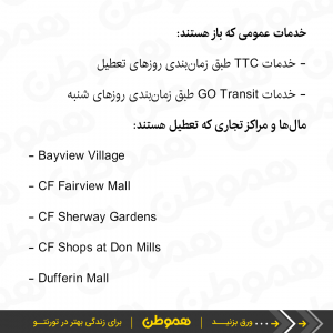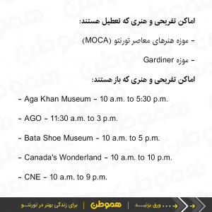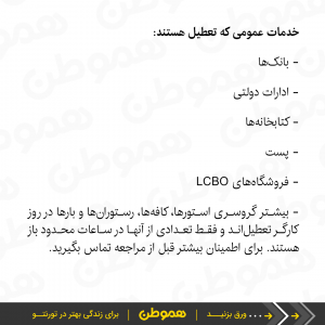 در سراسر کانادا، Labour Day تعطیل رسمی است و مراکز دولتی و اکثر بیزنسها در این روز تعطیل هستند.