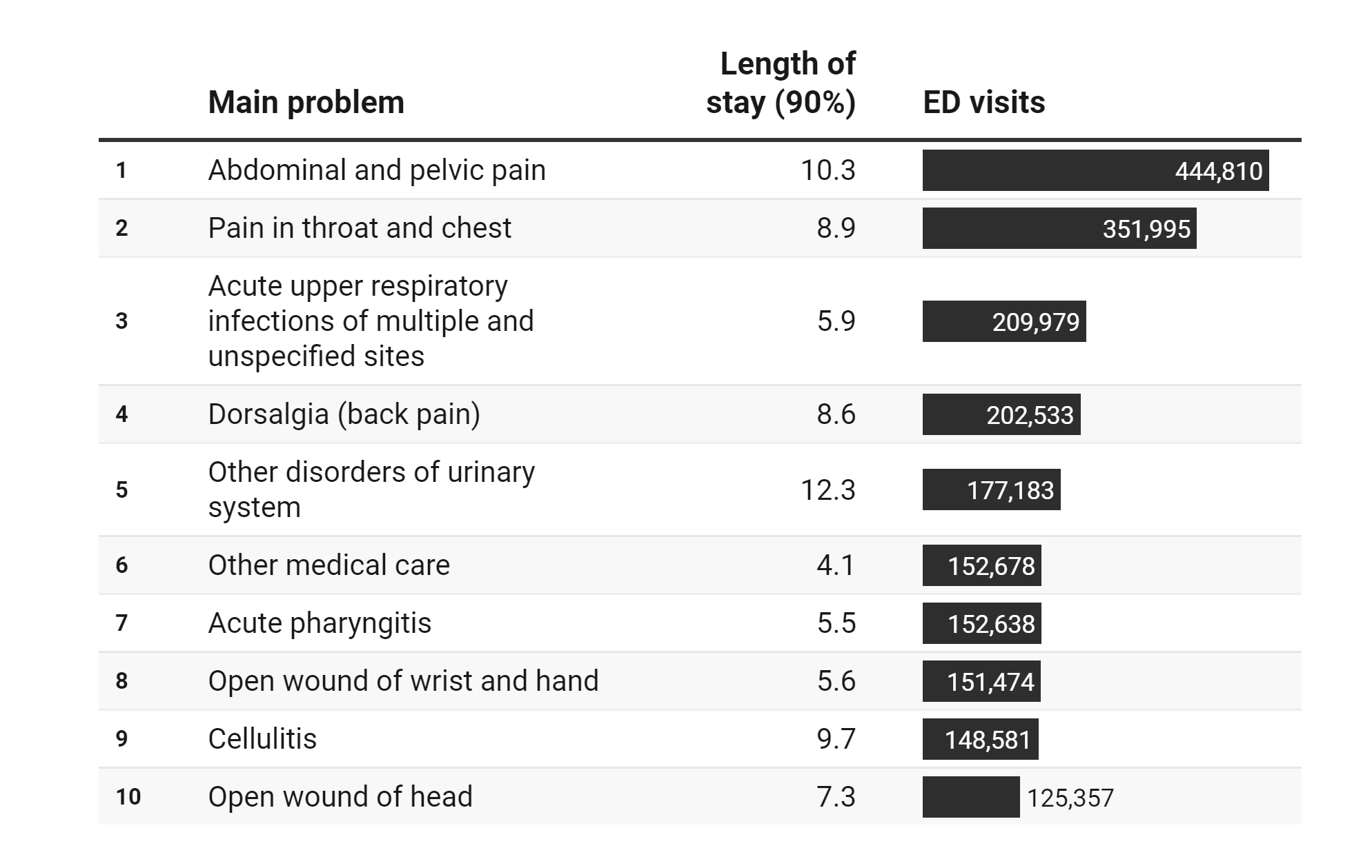 در طول چهار سال گذشته، دلیل اصلی برای ویزیتهای اورژانسی عمدتاً ثابت بوده: درد شکم و لگن به طور مداوم.