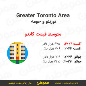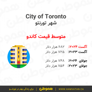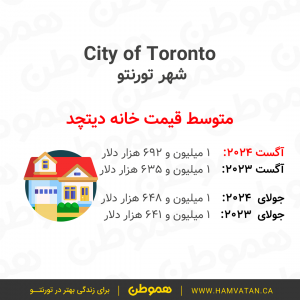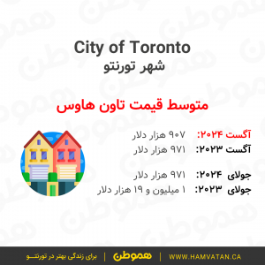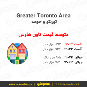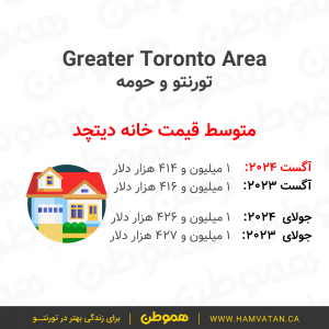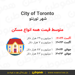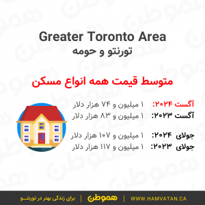 این گزارش نشان میدهد که در ماه آگست به طور متوسط قیمت مسکن در تورنتوی بزرگ (GTA)، حدودا ۱ میلیون و ۷۴ هزار دلار بوده.