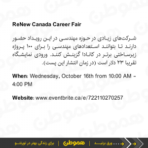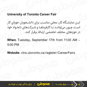 اگر جویای کار هستید و قصد دارید یک موقعیت شغلی مناسب برای خودتان پیدا کنید اما در دنیای شلوغ آگهیها و فراخوانهای مختلف استخدامی سردرگم شدهاید، پیشنهاد میکنیم حتما در ۵ نمایشگاه کاری که قرار است در تورنتو برگزار شوند، شرکت کنید تا بتوانید همزمان برای چند موقعیت شغلی مناسب اپلای کنید و شانس خود را برای پیدا کردن بهترینِ آنها بالا ببرید.