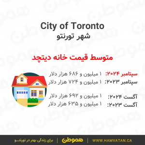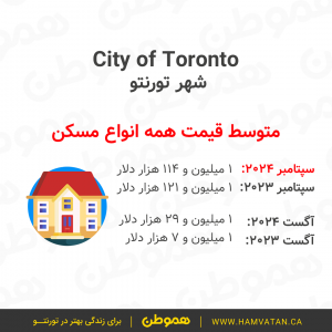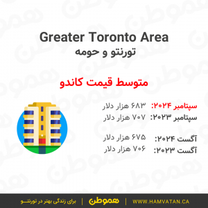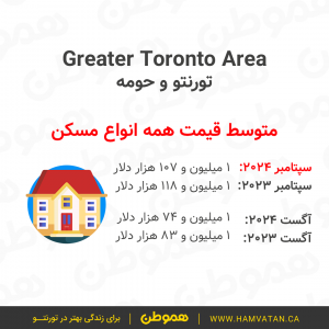 این گزارش نشان می‌دهد که در ماه سپتامبر به طور متوسط قیمت مسکن در تورنتوی بزرگ (GTA)، حدودا ۱ میلیون و ۱۰۷ هزار دلار بوده.