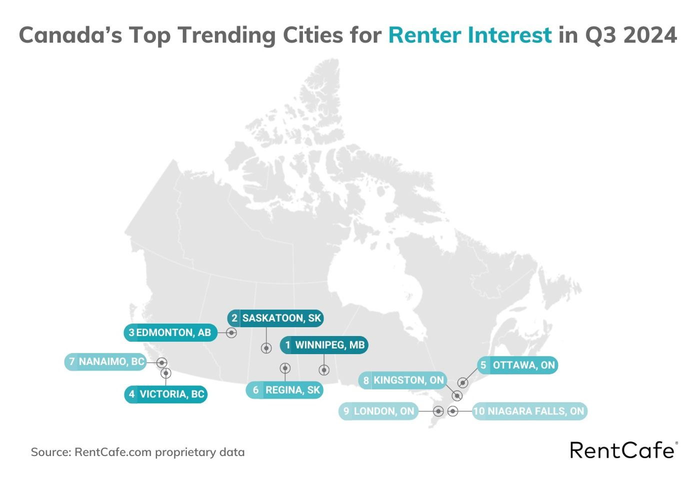 این گزارش می‌گوید که برخی از مستاجران به خاطر شرایط اقتصادی از شهرهایی مثل تورنتو و ونکوور به وینیپگ نقل‌مکان می‌کنند. سایر شهرهای محبوب کانادا برای مستاجران عبارتند از: ساسکاتون، ادمونتون و ویکتوریا.