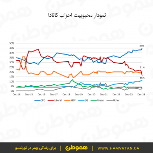 این در حالی است که محبوبیت محافظه‌کاران کانادا افزایش چشمگیری داشته. داده‌ها نشان می‌دهد که با حمایت ۴۵ درصدی، حزب محافظه‌کار در مسیر پیروزی تاریخی و تشکیل یک اکثریت قاطع در پارلمان است. این میزان حمایت حتی از مجموع آرای لیبرال‌ها و حزب NDP هم بیشتر است.