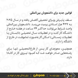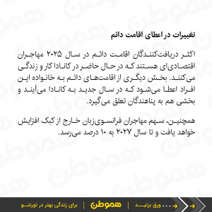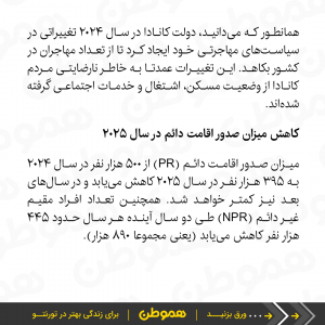 همانطور که می‌دانید، دولت کانادا در سال ۲۰۲۴ تغییراتی در سیاست‌های مهاجرتی خود ایجاد کرد تا از تعداد مهاجران در کشور بکاهد. این تغییرات عمدتا به خاطر نارضایتی مردم کانادا از وضعیت مسکن، اشتغال و خدمات اجتماعی گرفته شده‌اند.