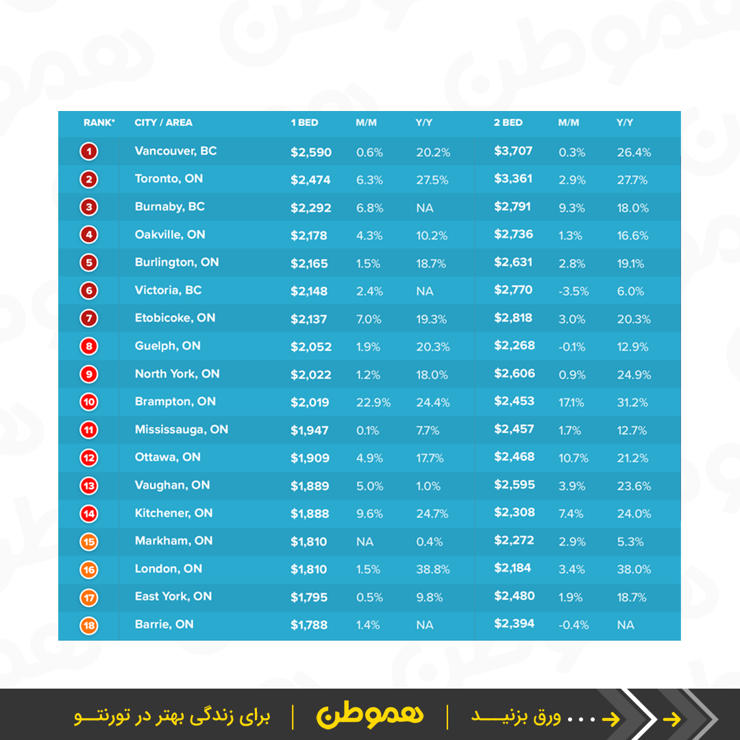 جزئیات اجاره مسکن شهرهای منتخب کانادا را در تصویر بعدی ببینید.
