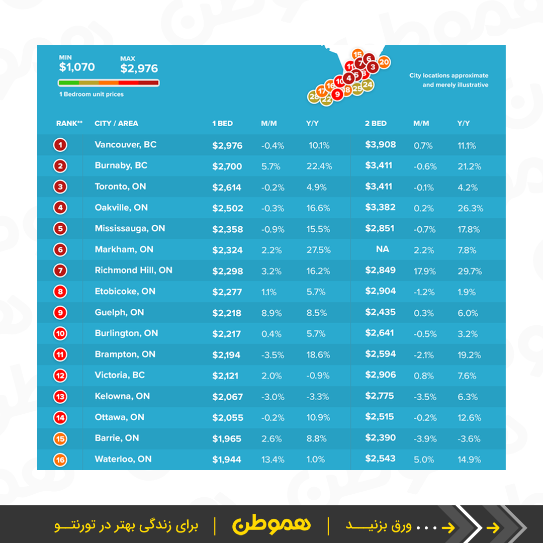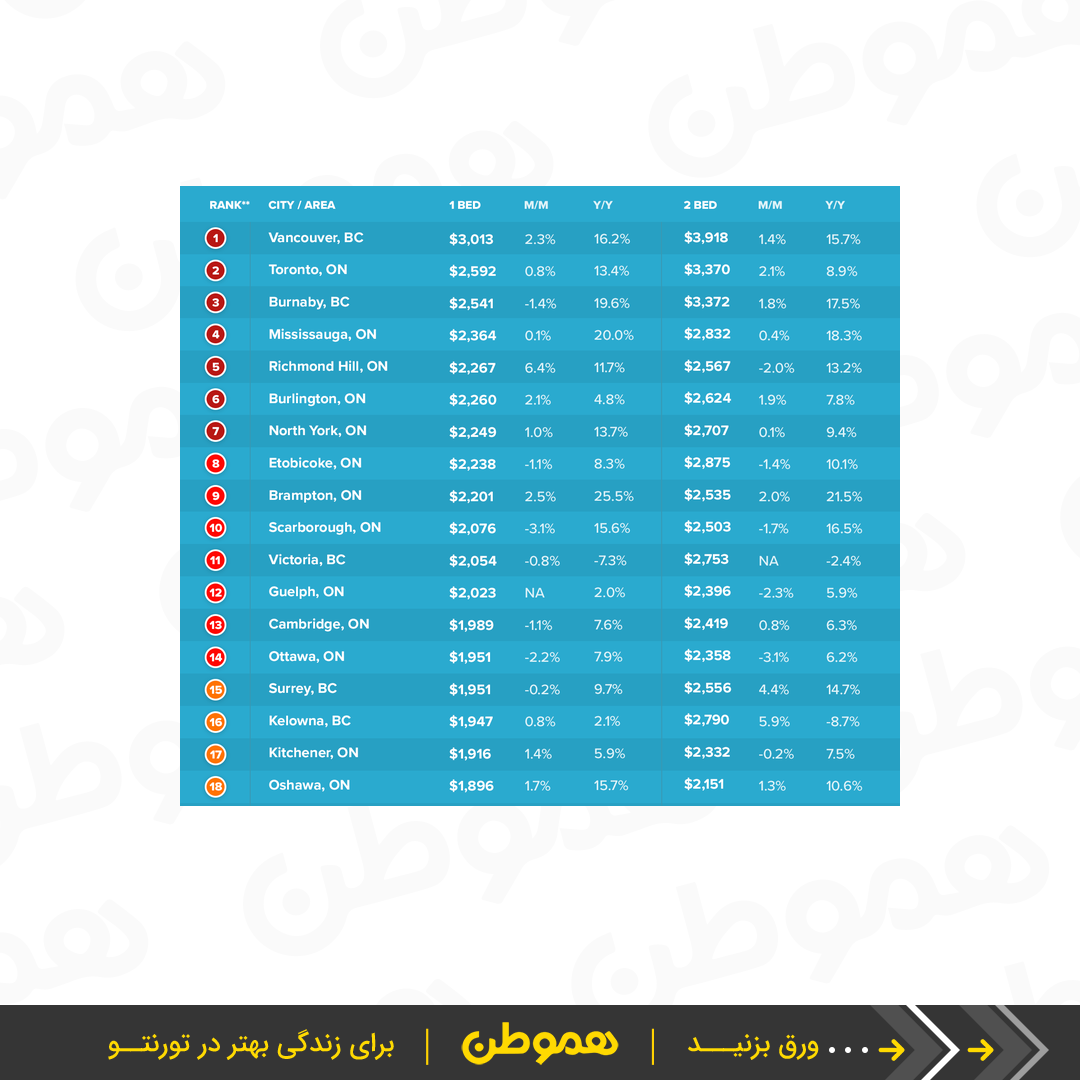 *این گزارش با استفاده از دادههای واحدهای مسکونی اجارهای لیست شده در سایت Rentals.ca تهیه شده.