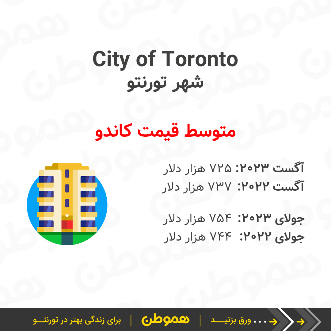بر اساس گزارش جدید، متوسط اجاره مسکن یک خوابه در شهر تورنتو ۲۵۹۲ دلار است که نسبت به سال گذشته ۱۳٫۴ درصد بیشتر شده. متوسط اجاره مسکن دو خوابه هم ۳۳۷۰ دلار اعلام شده که نسبت به سال قبل، ۸٫۹ درصد افزایش داشته.