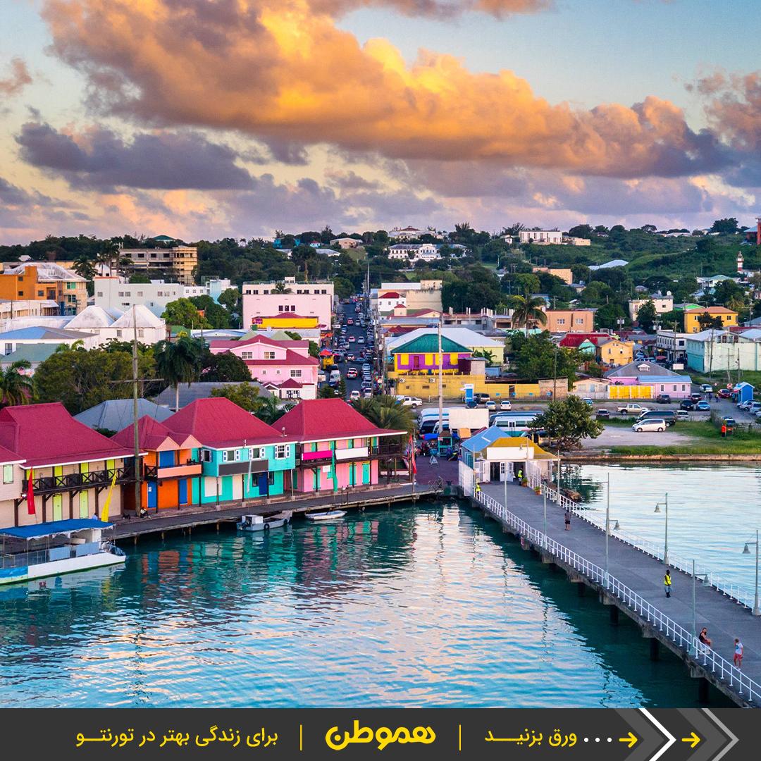 خانه‌های رنگارنگ در امتداد خط ساحلی و انعکاس آن‌ها در آب یکی از زیبایی‌های منحصر به فرد سنت جانز است.