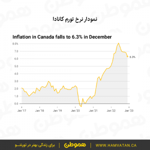 نرخ تورم سالانه کانادا در ماه دسامبر اندکی نسبت به ماه قبل کاهش یافته و به ۶٫۳ درصد رسیده. ماه قبل تورم ۶٫۸ درصد اعلام شده بود.