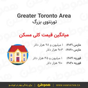 در ماه مارس، قیمت مسکن در منطقه GTA به میانگین ۱ میلیون ۹۸ هزار دلار و در شهر تورنتو به ۱ میلیون و ۸۳ هزار دلار رسید.