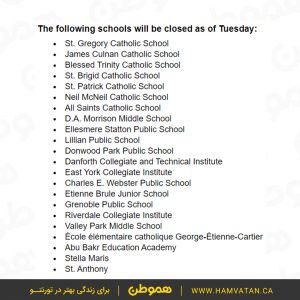 دستور خانه ماندن حداقل به مدت ۲۸ روز در استان انتاریو فعال است. یعنی ممکن است در تاریخ ۶ می لغو شود یا اینکه دوباره تمدید شود.